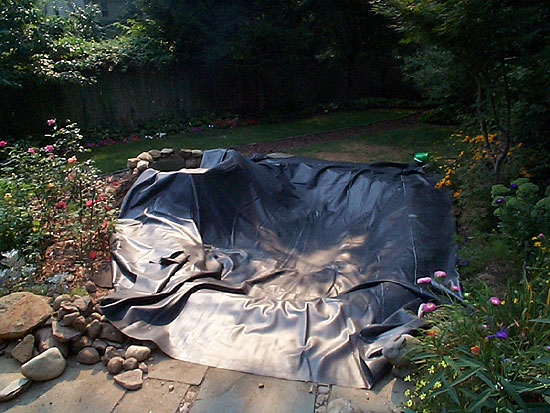 After about 30 minutes of tugging & heaving I finally decided I was happy with the liner's placement. It was just as well too... the area exposed to direct sunlight started to get really really hot.