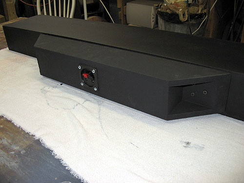 As I've done with other designs, I like to place my electronics in an external box mounted to the rear of the speaker. This simplifies securing the components & also takes their mass out of the enclosure's internal volume equation.