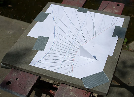 As you can see my final design is pretty wild looking. I taped the template to a nice flat piece of slate & gave it one final test.