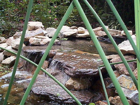 OK so this shot doesn't really document the pond's construction but I did like its composition with the bullrush leaves framing the falls.