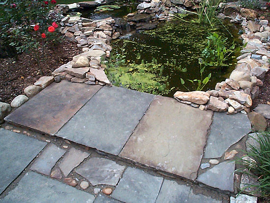 We ended up leveling the stones at the edge which created a small step. Made for much better footing & doesn't look quite as awkward.