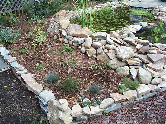 back of the pond we created a rocked in flower bed. Actually we had quite an