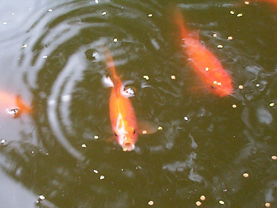We've more or less got the fish trained to come to the surface close to the viewing platform when its feeding time. By placing the food in the same spot every day it didn't take them long to figure out where to go.
