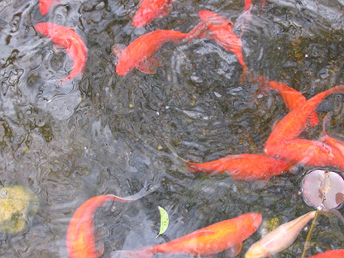 We shall begin feeding them once the water's temperature stabilizes above 50 degrees. Right now its hovering just above the freezing point though. It still amazes me that the fish can tolerate that but come Spring they usually look healthy, if not a little thinner.