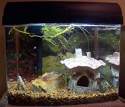 Our fish have been multiplying like crazy since we discovered tiny fish fry in the pond. At first we were afraid that the adult fish would eat the babies so we set up a nursery tank & set about 'rescuing' as many as we could catch.