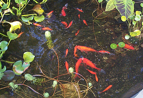 It soon became clear that this was unnecessary as the baby fish in the pond not only survived but also grew about three times as fast as those in the fish tank. Nevertheless we decided to keep a few in the tank as house pets. Unfortunately maintaining the water quality in such a small tank proved to be too much of a challenge & we lost a few due to wild swings in pH levels.