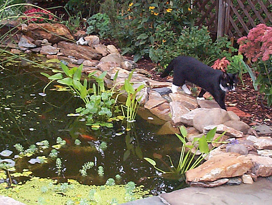 Seems the neighbors have a new cat. That brings the total up to three. This younger one seems a lot more interested in the fish. So far its natural dislike of water seems to be dissuading it from messing with the fish though.