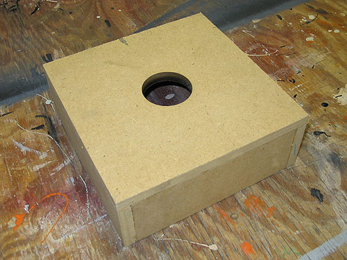 To allow future ease of tweaking to the electronics I decided to mount the circuit in an external box. This would let me gain access to the components without having to remove the drivers. It also simplified the hookup, not having to secure all that spaghetti & make it rattle proof in side the enclosure. The electronics box would be mounted on the rear of the speaker.